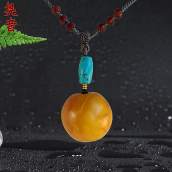 奥音T19藏传玛瑙传世牙黄双天圆地方老天珠项链吊坠手链配饰