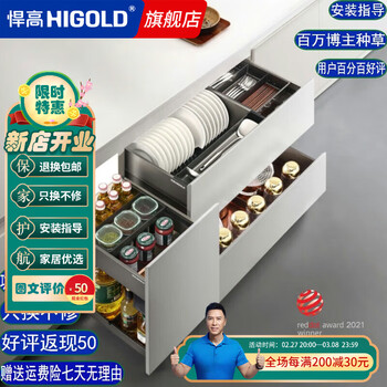 悍高 HIGOLD厨卫拉篮橱柜碗碟拉篮厨房抽屉式调味篮餐具收纳篮碗篮
