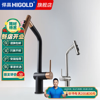 悍高 HIGOLD 旋转抽拉龙头冷热厨房水龙头洗菜盆水槽龙头不锈钢拉丝龙头