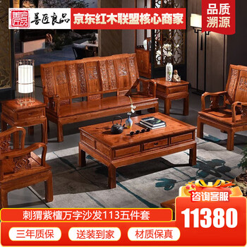 善匠良品 红木家具非洲花梨(学名:刺猬紫檀)沙发 实木沙发组合仿古中式别墅客厅家具