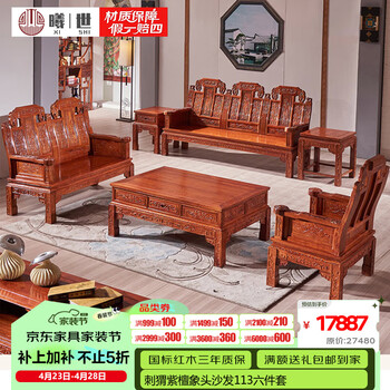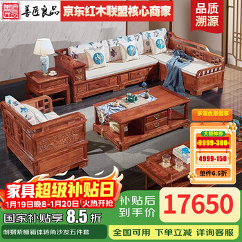 善匠良品 红木家具非洲花梨(学名:刺猬紫檀)实木沙发 新中式贵妃箱体转角沙发
