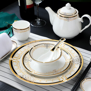 粒矜中式饭店酒店用品摆台餐具四件套陶瓷包厢摆盘碗盘碟套装富丽堂皇