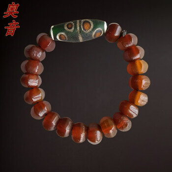 奥音T10藏传玛瑙传世敬仰双塔牙黄一眼靠山老天珠手链配饰
