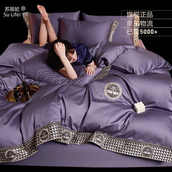 苏丽妃A类母婴轻奢长绒棉四件套纯棉刺绣被套全棉床单高档亲肤裸睡床品4