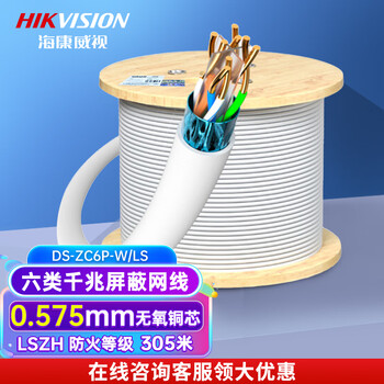 海康威视 六类/超六类网线 CAT6千兆6A类万兆低烟无卤网线无氧铜芯双绞线