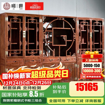 曦世 红木家具非洲花梨(学名:刺猬紫檀)博古架 实木书架书柜