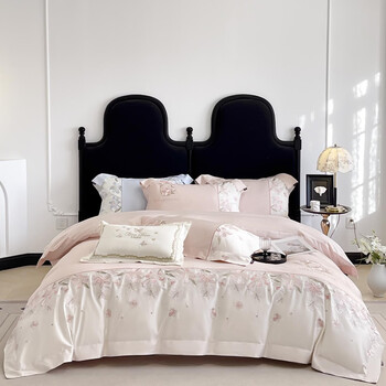 苏丽妃180支全棉长绒棉刺绣四件套粉色公主风纯棉被套床单床笠床上用品