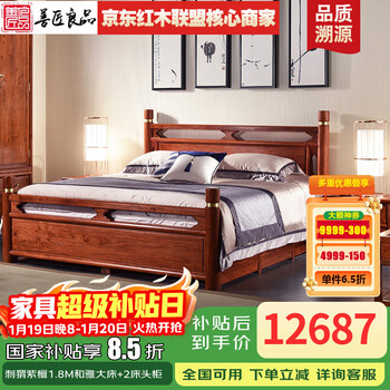 善匠良品深色名贵硬木金花梨木(学名:番龙眼)实木床卧室家具中式双人大床