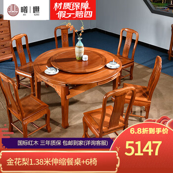 曦世 红木家具非洲花梨(学名:刺猬紫檀)实木两用茶桌 新中式干泡茶台组合
